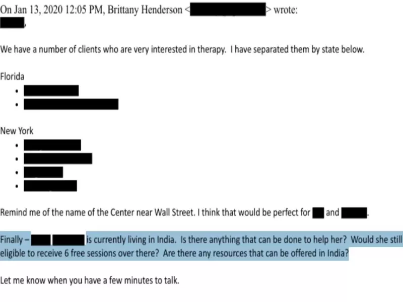 E-mail communication between U.S. authorities on Epstein files / U.S. Dept. of JusticeThe email correspondence was in response to an email by American attorney Brittany Henderson, who represents survivors of sexual abuse and sex trafficking. Henderson wrote, "Finally (redacted) is currently living in India."