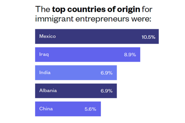 the top countries of origin for immgrants entrepreneurs were / Image- American Immigration ReportIndian immigrants, in particular, have emerged as key contributors to Michigan's economy. They represent 6.9 percent of immigrant entrepreneurs, underscoring their substantial role in the state's business landscape. Entrepreneur Manish Senta was profiled in the article; he emigrated to the US in 2005 to attend Purdue University for graduate studies in nanotechnology.