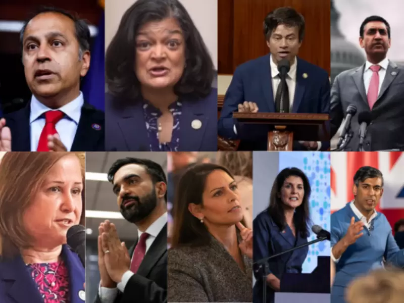 (Top L-R) Raja Krishnamoorthi, Pramila Jayapal, Shri Thanedar, Ro Khanna (Bottom L-R) Ghazala Hashmi, Zohran Mamdani, Priti Patel, Nikki Haley, Rishi Sunak / File Photo/ X ((Top L-R) Raja Krishnamoorthi, Pramila Jayapal, Shri Thanedar, Ro Khanna (Bottom L-R) Ghazala Hashmi, Zohran Mamdani, Priti Patel, Nikki Haley, Rishi Sunak_