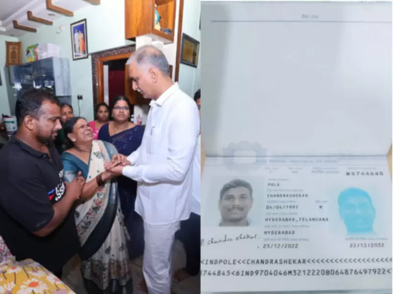 Local leader T. Harish Rao visiting Chandrashekar Pole's family/ Chandrashekar Pole passport / X (@BRSHarish)
