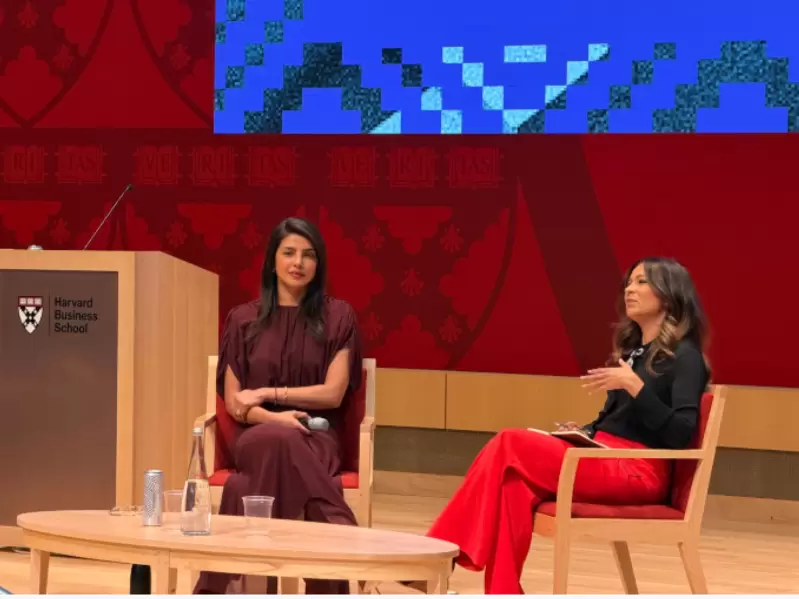 Priyanka Chopra Jonas with Anjula Acharia for a fireside chat at Harvard Business School / New India Abroad