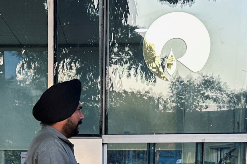 A guard walks past the Reliance Industries logo near the entrance of Dhirubhai Ambani Knowledge City in Navi Mumbai, March 15, 2024. REUTERS/Francis Mascarenhas/File Photo / Reuters