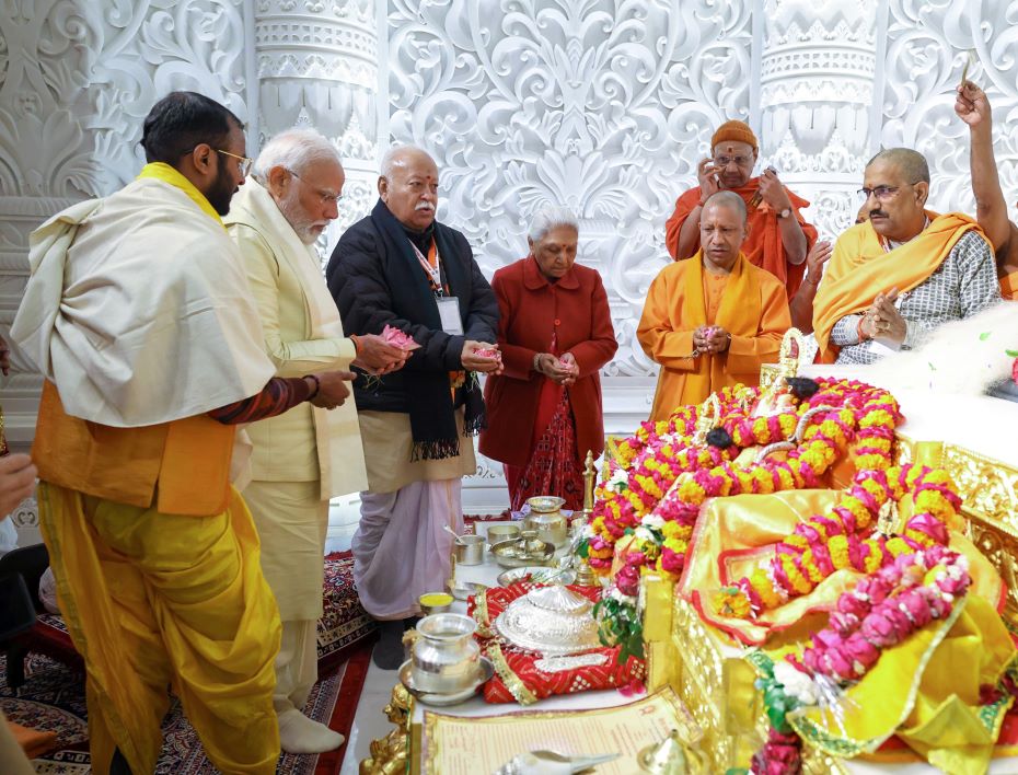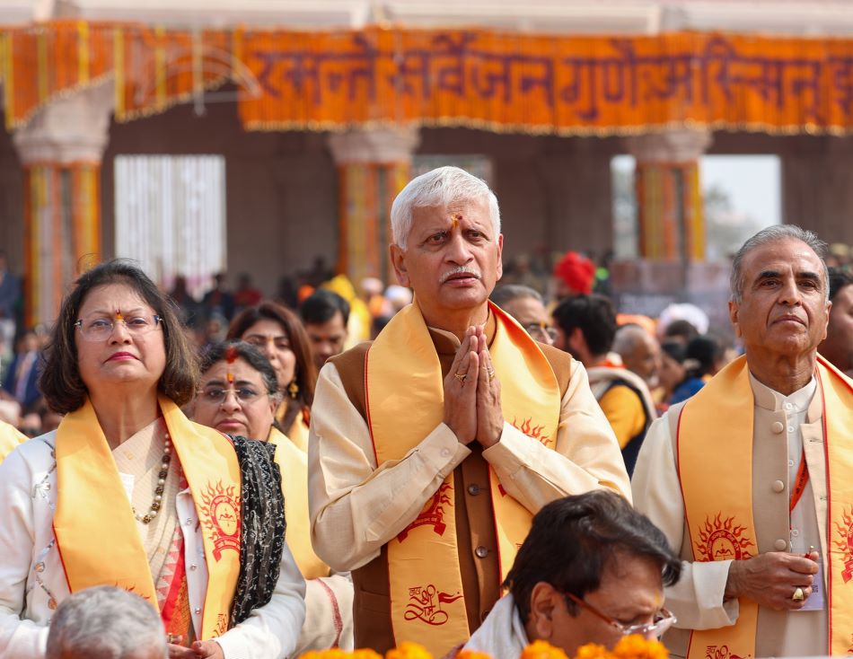 Prime Minister Narendra Modi participated in the Pran Pratishtha (consecration) ceremony of Ramlalla in the newly built Shri Ram Janmbhoomi Temple in Ayodhya, Uttar Pradesh.