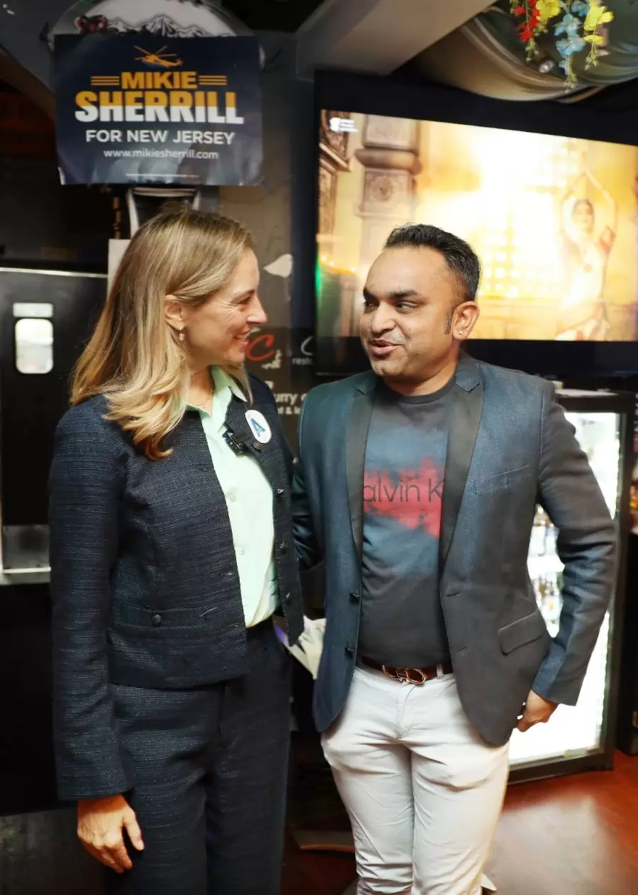 U.S. Representative Mikie Sherrill, the Democratic nominee in New Jersey’s 2025 gubernatorial race, met with members of the Indian-American and Filipino communities at Curry On, a popular Jersey City restaurant, on Oct. 5.