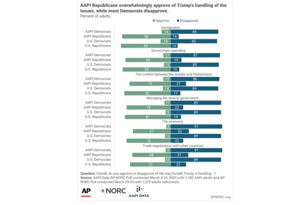 “Many in the AAPI community are concerned about which policies the Trump administration is focusing on,” said Jennifer Benz, deputy director of The AP-NORC Center. “Neither party has the faith of the community to address high-priority issues such as economic issues and inflation.”
