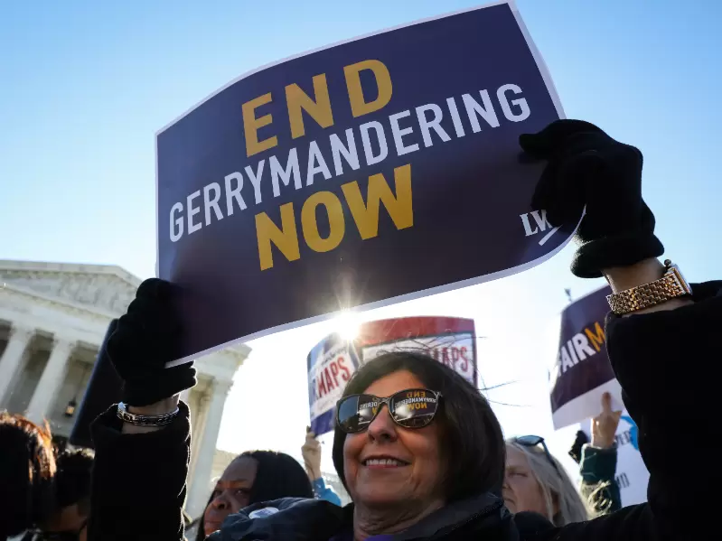 Demonstrators protest during a Fair Maps rally outside the U.S. Supreme Court, in Washington, U.S., March 26, 2019. / REUTERS/Brendan McDermid/File Photo