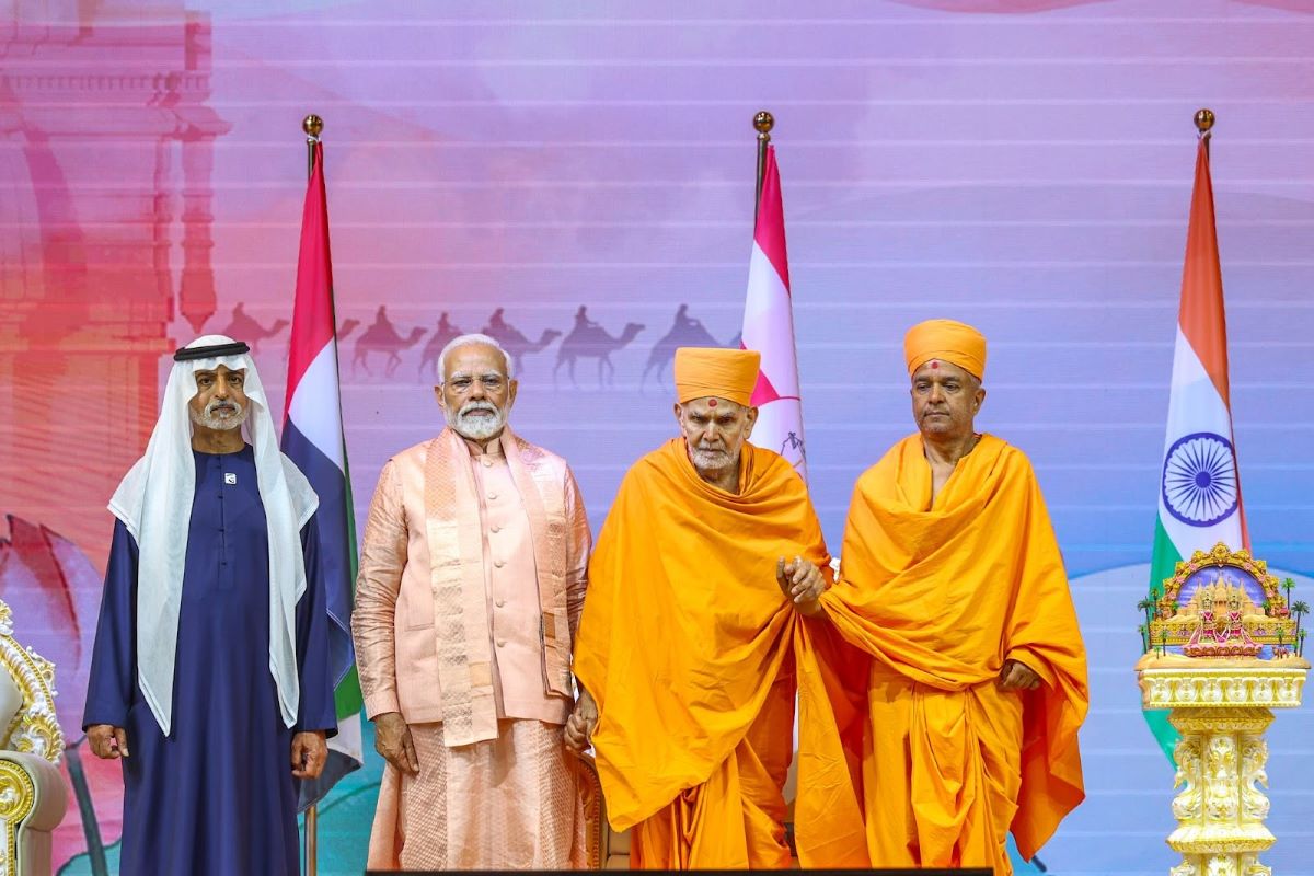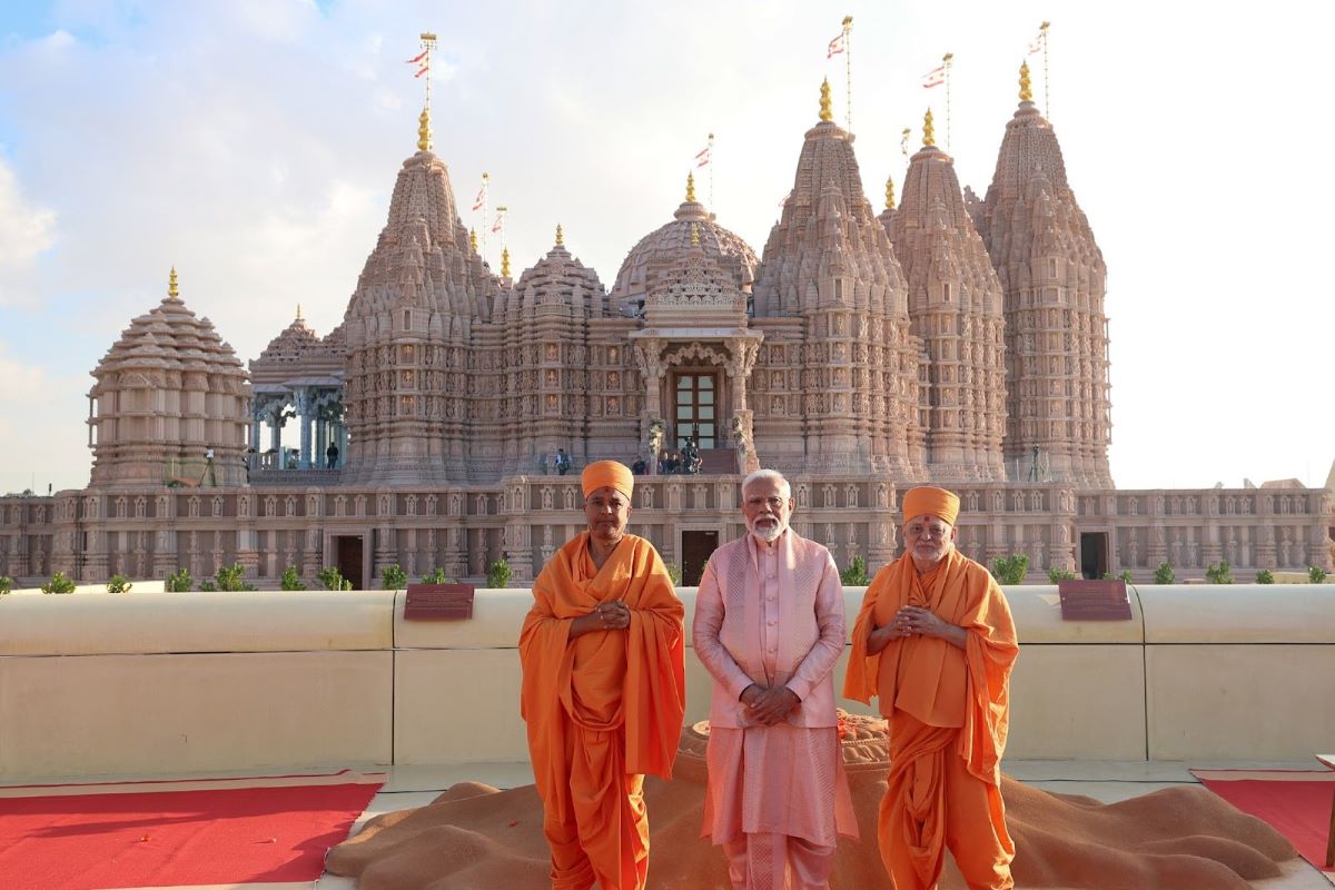 PM Modi lauded the temple as “a symbol of communal harmony and global unity for the entire world” and expressed his gratitude to the UAE President Mohamed bin Zayed Al Nahyan and his government on behalf of Indians and its diaspora around the world. / PIB