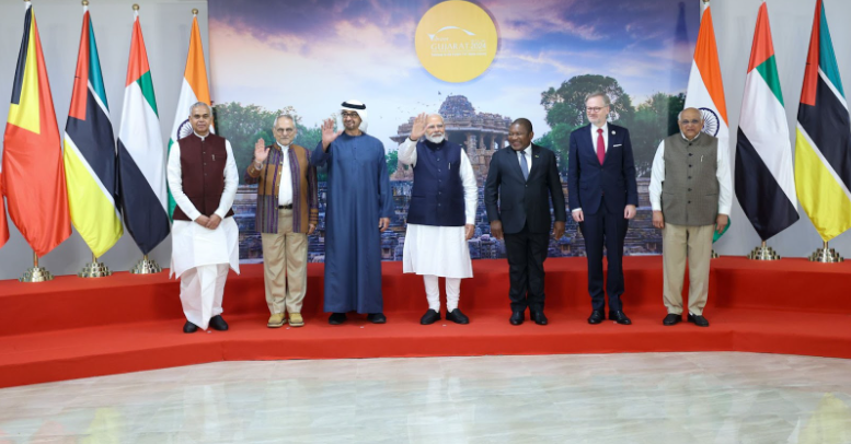 PM with visiting Heads of State/Government and other participating dignitaries at the 10th Vibrant Gujarat Summit at Gandhinagar, in Gujarat on January 10, 2024. / Image - PIB