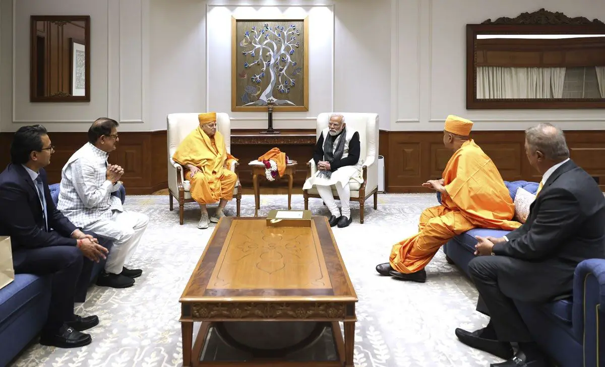 In the concluding moments of the meeting, the Swamis conveyed the love and spiritual intent of their leader, Mahant Swami Maharaj and offered prayers for the PM's health and well-being.