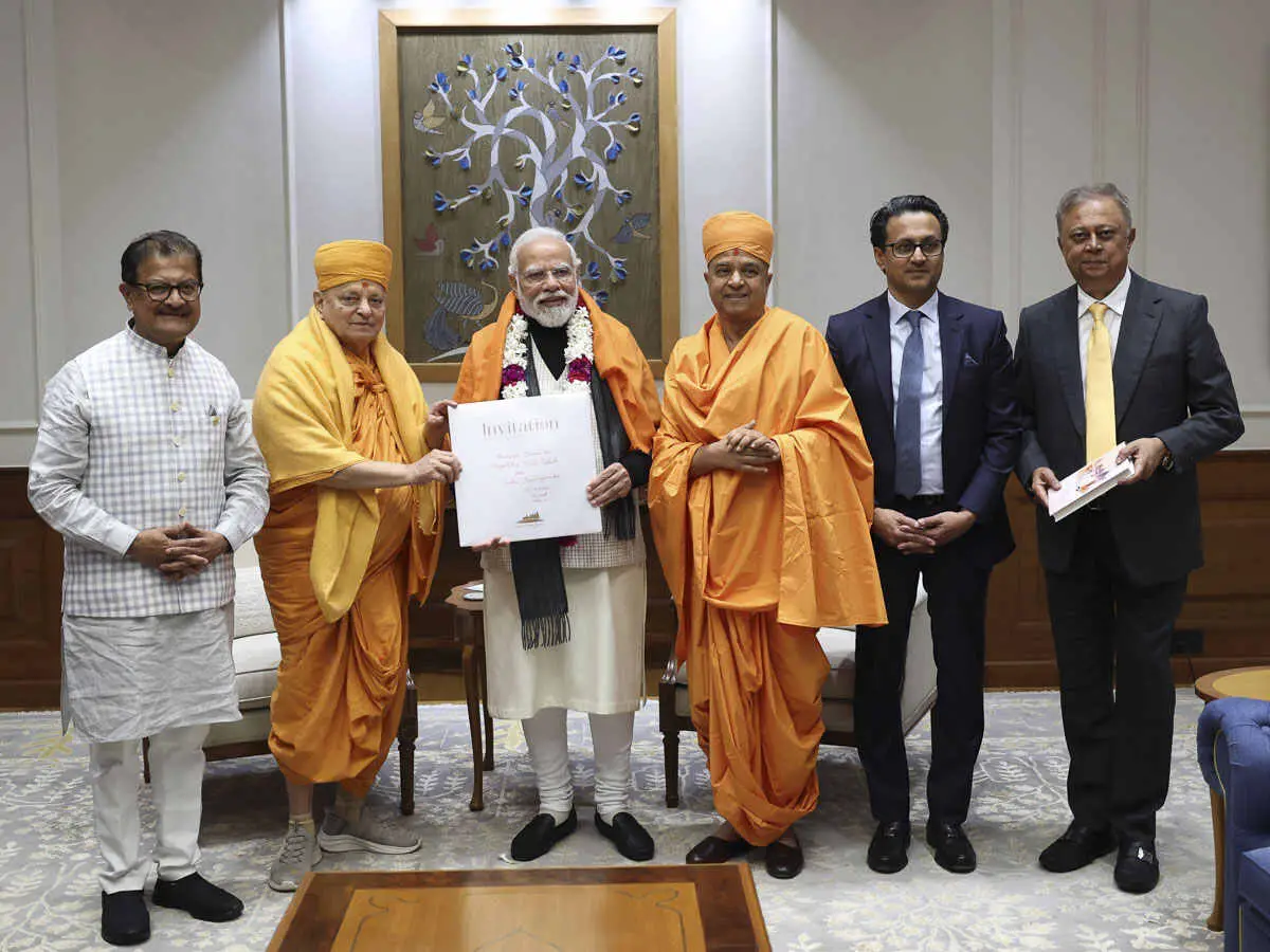 The BAPS delegation extended an invitation to the PM during an hour-long meeting in New Delhi