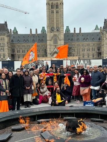 In Canada, the Yatra began on Mar. 25 with ceremonies at the Vishnu Temple in Richmond Hill, Ontario. The Canadian inauguration featured the Pran Pratishtha ceremony, followed by a puja specifically for the Rath.