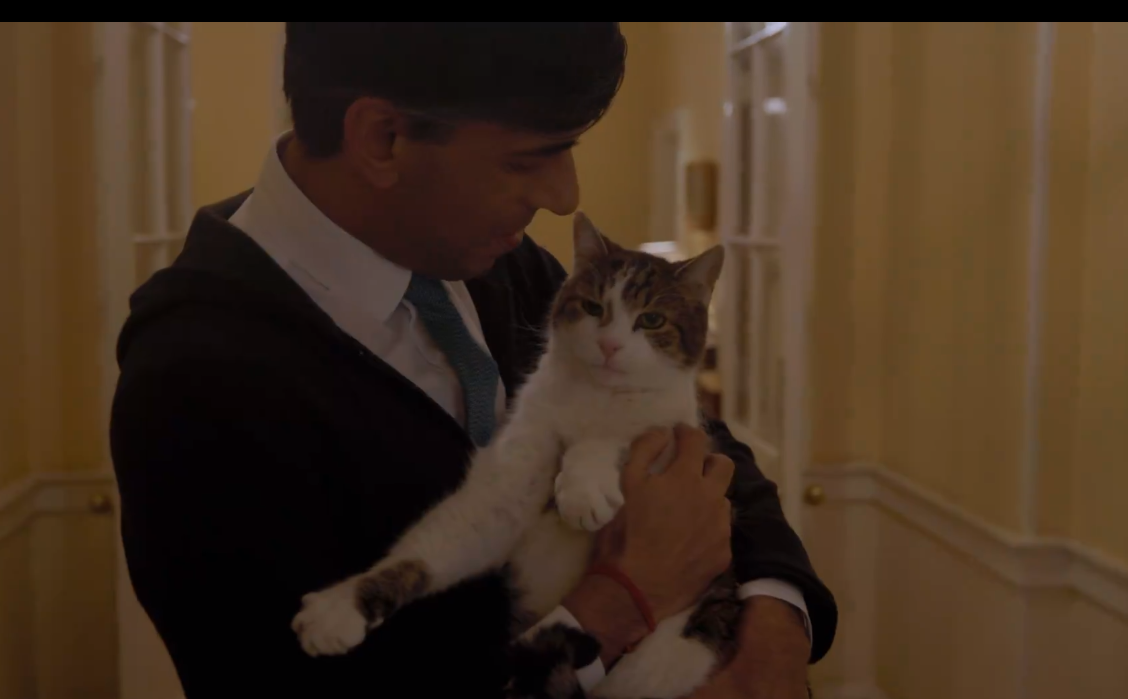 Rishi Sunak with Larry the Cat in Christmas video / x/RishiSunak