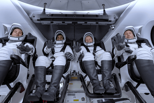 Indian astronaut Shubhanshu Shukla (second from left) with crew members before takeoff / X/@SpaceX
