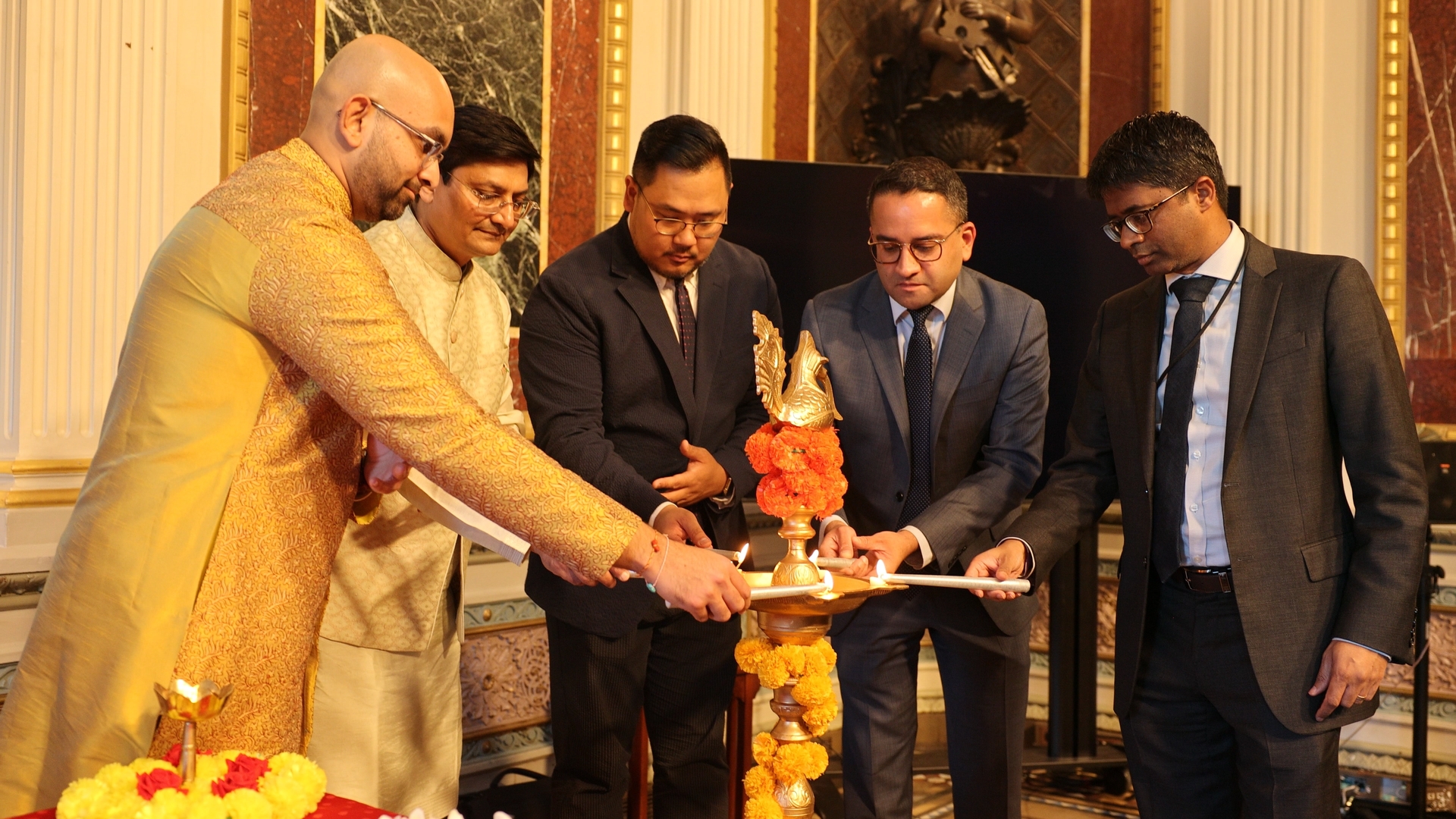 The celebrations began with a contemporary rendition of the Navkar Mantra, one of the most ancient mantras still in use today. This was followed by speeches and a formal Diya (lamp) lighting ceremony. Haresh Shah, president of Federation of Jain Associations in North America, (JAINA) a long-standing collaborator, and Nissim Reuben, an ardent supporter of SRLC also graced the event.