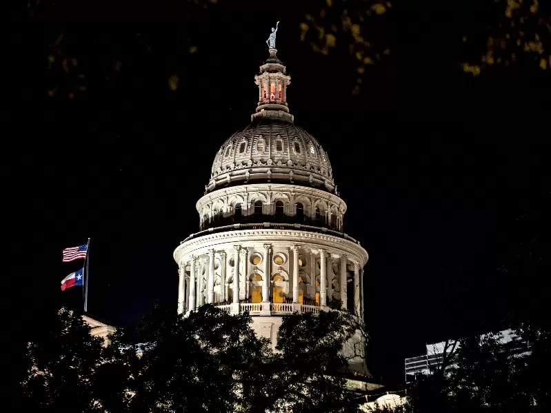 The Texas Capitol is lit during a session in the State Senate, as Republicans attempt to pass an HB 4, a bill that would redraw the state's 38 Congressional Districts, in Austin, Texas, U.S. August 22, 2025. / REUTERS/Sergio Flores/File Photo/File Photo
