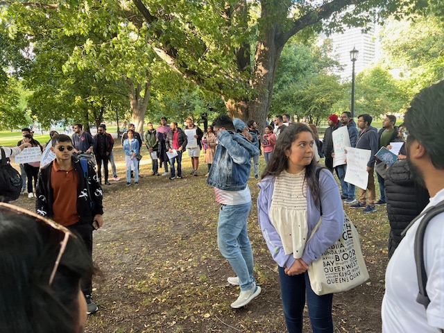 टोरंटो का क्वीन पार्क ओंटारियो की प्रांतीय संसद से सटा है। यहां प्रदर्शन के दौरान बंगाली समुदाय के सदस्यों के अलावा अन्य समुदायों के सदस्य भी मौजूद रहे। प्लेकार्ड लेकर प्रदर्शनकारी पार्क के साथ लाइन में खड़े हुए। वहीं, एक संगीत समूह पीड़ित डॉक्टर के बलिदान को सम्मानित करने के लिए कुछ गीत बजा रहा था। प्रदर्शनकारी बाद में पार्क के अंदर गए और पीड़िता और उनके परिवार के लिए न्याय की मांग करते हुए नारे लगाए।