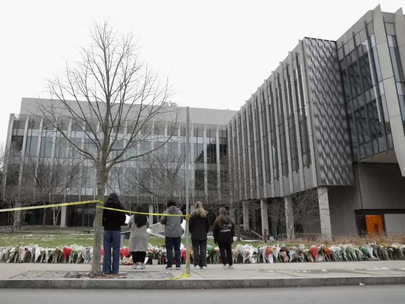 Community members bring flowers to a growing makeshift memorial outside the Barus & Holley building following a shooting at Brown University in Providence, Rhode Island, U.S. / REUTERS/Taylor Coester
