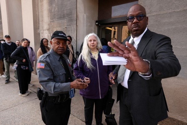 The line to get into the Rockville, Maryland HHS building stretched from the door to the parking lot, two sources told Reuters, with only two security guards on site screening everyone attempting to enter.
