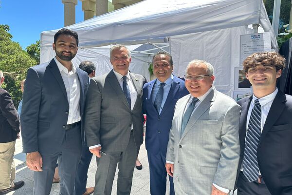 Joe Biden (extreme left) has received a lot of support from Vinod Khosla and Ajay Jain Bhutoria (from left to right). / Courtesy Photo