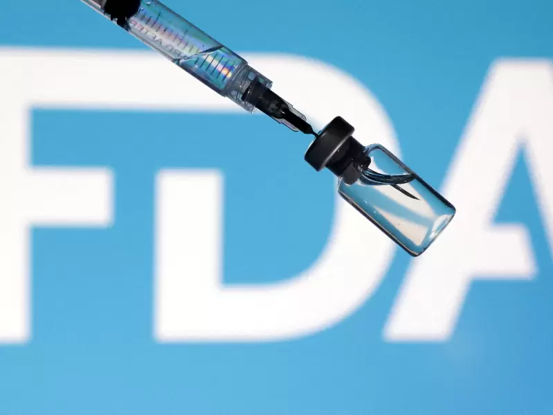 A U.S. Food and Drug Administration (FDA) logo, a syringe and a vial are seen in this illustration taken May 13, 2025. / REUTERS/Dado Ruvic/Illustration