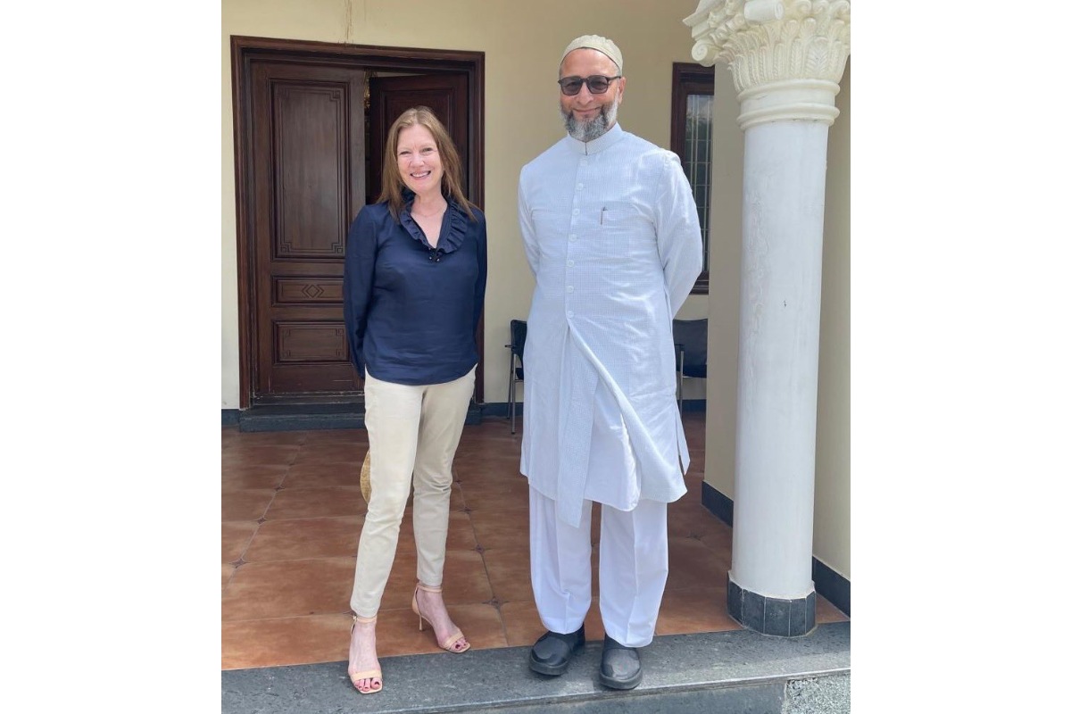 Consul General Jennifer Larson with AIMIM chief Asaduddin Owaisi. / X/@USCGHyderabad