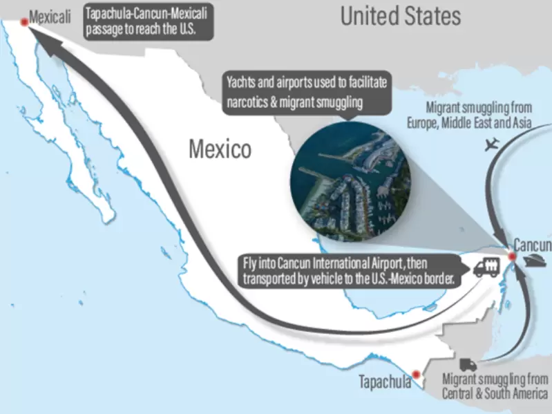 Operating from Cancun, the network allegedly used its own yachts and marinas to ferry undocumented migrants into Mexico. Once in the country, migrants were housed in hostels and hotels before being transported north to the U.S.-Mexico border — often through the Tapachula-Cancun-Mexicali corridor, a route also used by the Hernandez Salas cartel, previously sanctioned in 2023.