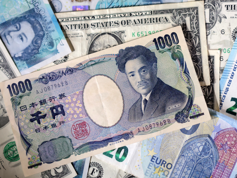 U.S. dollar, Euro, Yen and Pound banknotes are seen in this illustration taken May 4, 2025. / REUTERS/Dado Ruvic/Illustration
