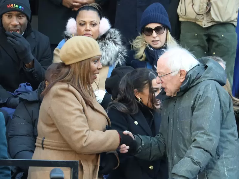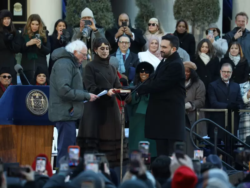 Mamdani was sworn in by Senator Bernie Sanders and took the oath of office on two Korans, held by his wife, Rama Duwaji. / Mohammed Jaffer Snapsindia