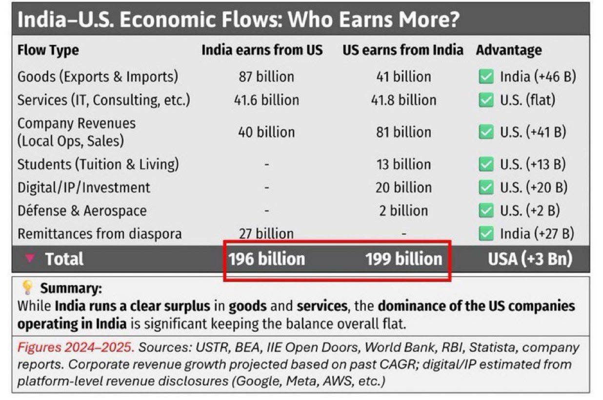 From the table (with sources mentioned) you can see the figures of India’s trade with the US (which does not include tourism spend of Indians in the US ) and it will be clear to any common person that the US makes more money from India than the other way around.