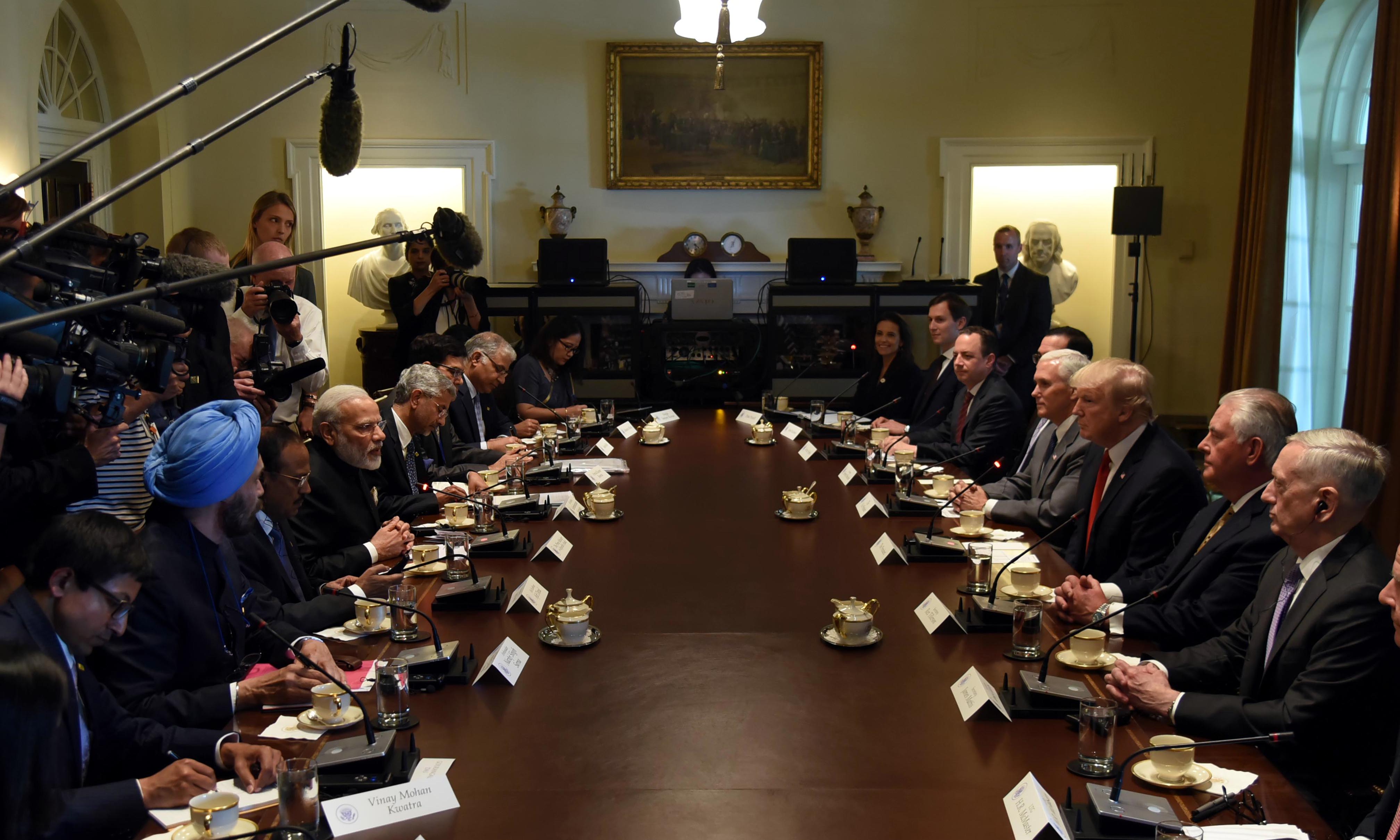 Bilateral meeting between India and the United States led by Narendra Modi and Donald Trump. / X/@narendramodi