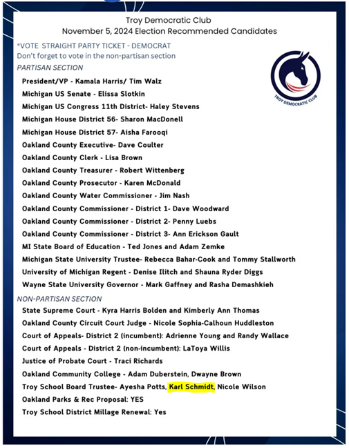 Unfortunately, some of the usual voices against racism and touting diversity, have been silent. Karl Schmidt has been endorsed by the local Democrat club. As such, not only are those affiliated with the club silent, some are actually trying to defend him. None of the other members of the board has condemned the racism or stereotypes propagated in that email; neither did any of the local elected Democrats. Ignoring many Indian American leaders, the Troy Democrat Club recently brought in canvassers from distant cities, which passed out recommendation flyers with Schmidt’s name on it, even though the school board position is officially nonpartisan