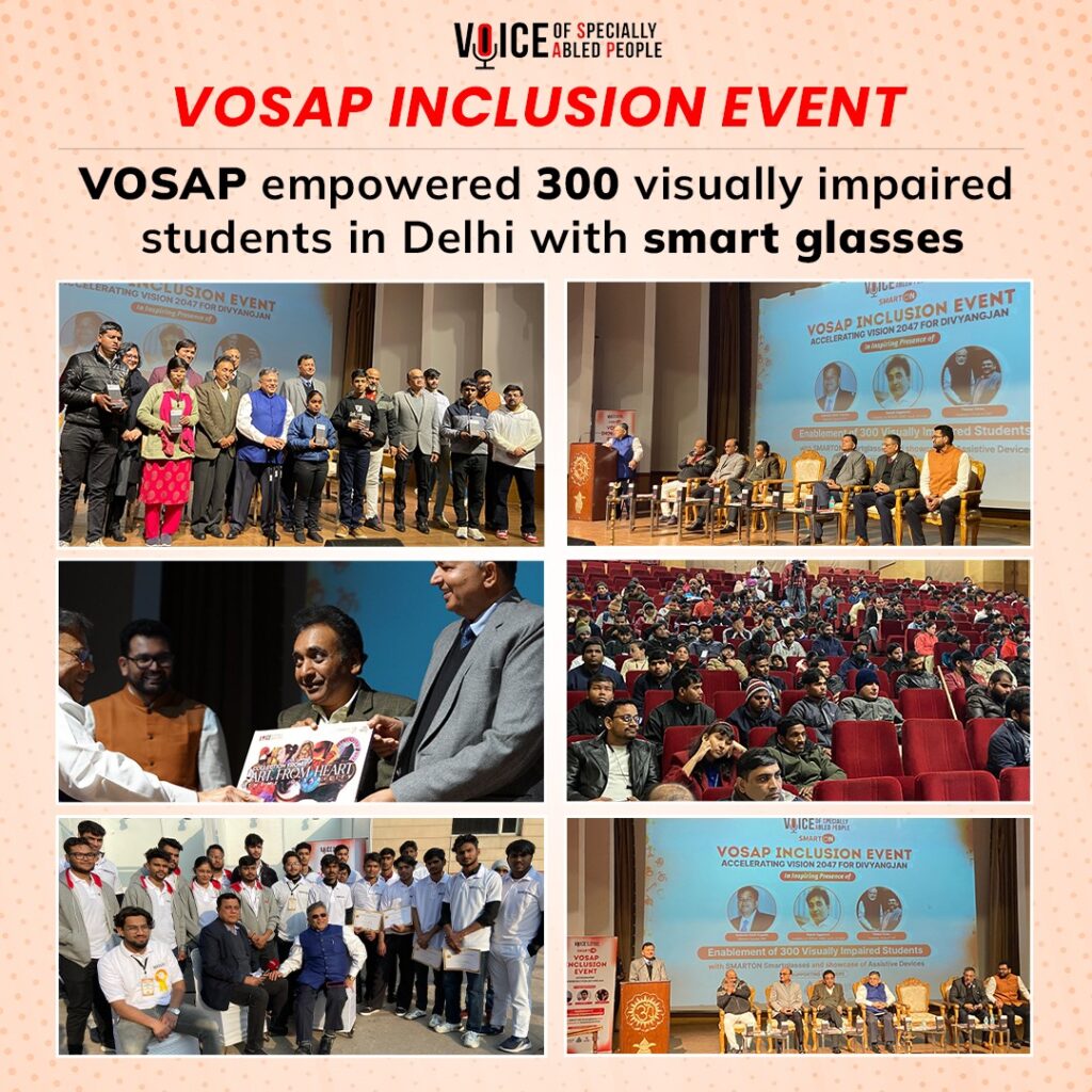 Voice of Specially-Abled People distributed AI-based smart glasses to over 300 visually-challenged students from Delhi. In the first ever enablement event in Delhi, VOSAP aimed to empower persons with disabilities, where technology met awareness in a way that directly benefited 300 blind individuals.