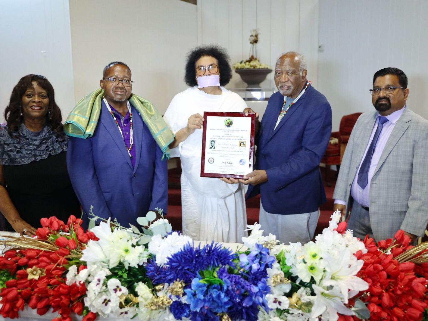 US Representative Danny K. Davis, Cook County Commissioner Dennis Deer, American Multi Ethnic Coalition (AMEC) governor Dr Zenobia Sowell and AMEC executive director Naveen Karna presented him with the award at a special program organized at Bethel Mennonite Community Church, Chicago.