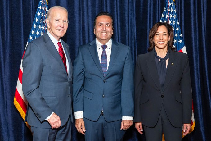 Ajay Bhutoria with President Joe Biden and VP Kamala Harris / X@ajainb