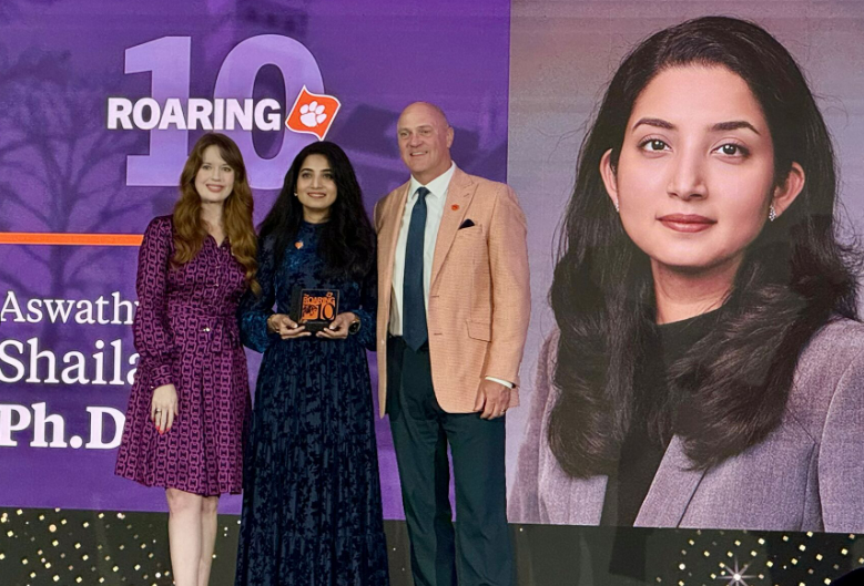 Clemson University has named former Indian-origin student Aswathy Shailaja among the recipients of its Roaring10 alumni award for 2025.
