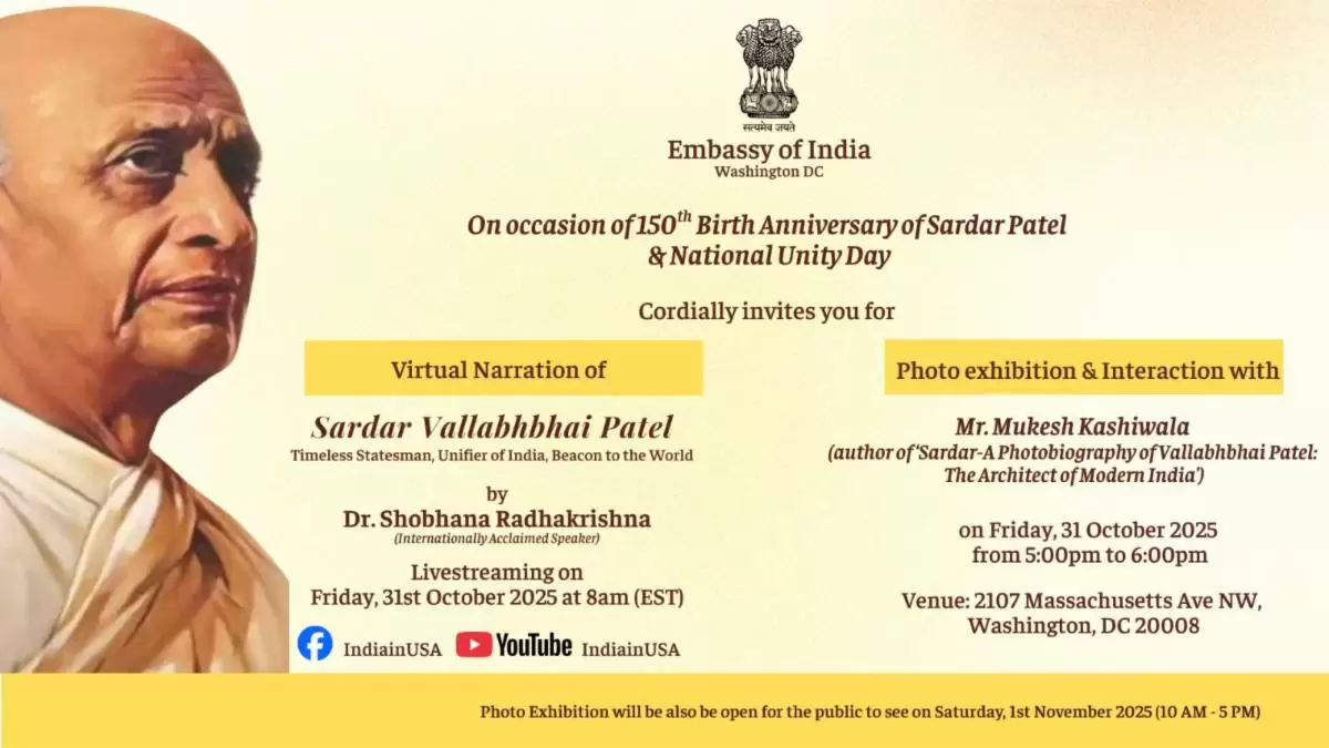 To mark the 150th birth anniversary of Sardar Vallabhbhai Patel and National Unity Day, the Embassy of India in Washington DC hosted a photo exhibition and interactive session with Mukesh Kashiwala, author of ‘Sardar – A Photobiography of Vallabhbhai Patel: The Architect of Modern India’.