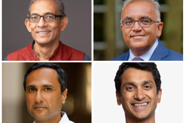 (top L-R) Abhijit Banerjee, Dr.Ashish Kumar Jha (bottom L-R) Eboo Patel, Premal Shah. /