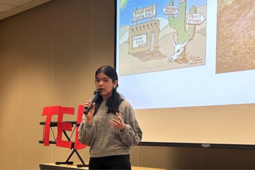 Smriti Mehta delivering a TEDx talk on nutrition education. / LinkedIn/ Smriti Mehta