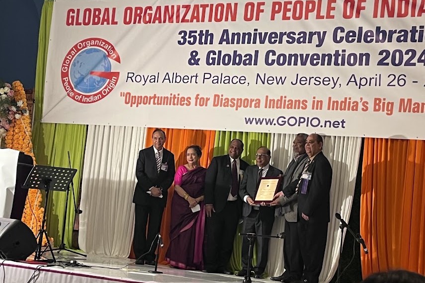 Dharmatma Saran, chairman and founder of Miss/Mrs./Teen India Worldwide, was honored with the Community Service Award at the global convention of GOPIO (Global Organization of People of Indian Origin) last month in Fords, New Jersey.
