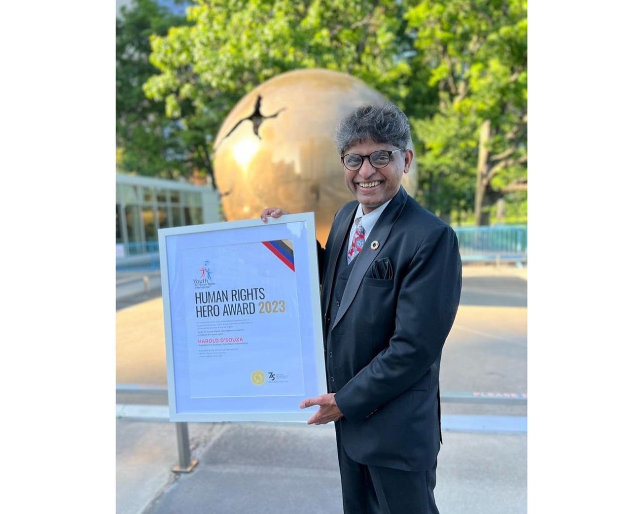 Indian-American labour trafficking and debt bondage survivor, Harold D’souza, was honoured with the Human Rights Hero Award 2023 during the 17th Annual International Human Rights Youth Summit at the United Nations headquarters in New York.