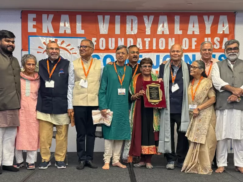 Businessman Subhash Gupta (in grey scarf) was honored with Ekal USA Lifetime Achievement Award for decades of service. / Courtesy of Subhash Gupta