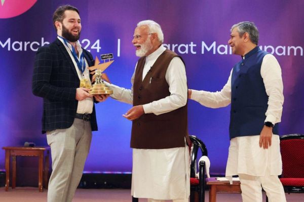 Andrew Hicks receiving the award from PM Modi at Bharat Mandapam, New Delhi / Instagram@ indiadrew77