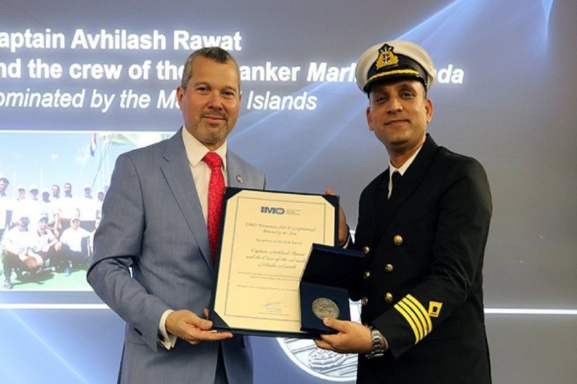 Rawat accepted this honor on behalf of his crew from the oil tanker Marlin Luanda at a ceremony held at the IMO headquarters in London.