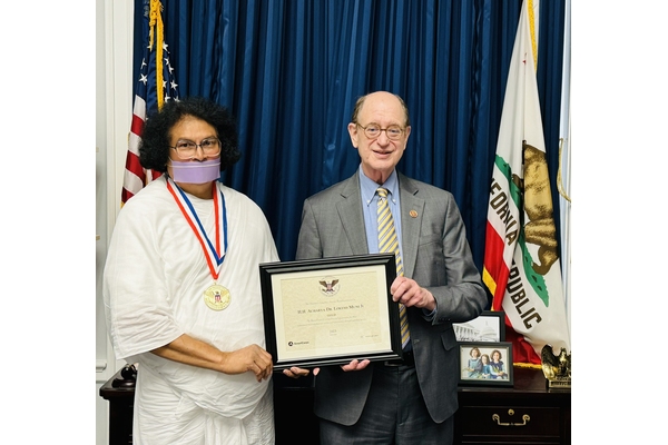 This recognition marks Acharya Lokesh as the first Indian monk to receive the Presidential award. Senior Congressman Brad Sherman read the certificate and citation, underscoring the significance of Acharya Lokesh's contributions.