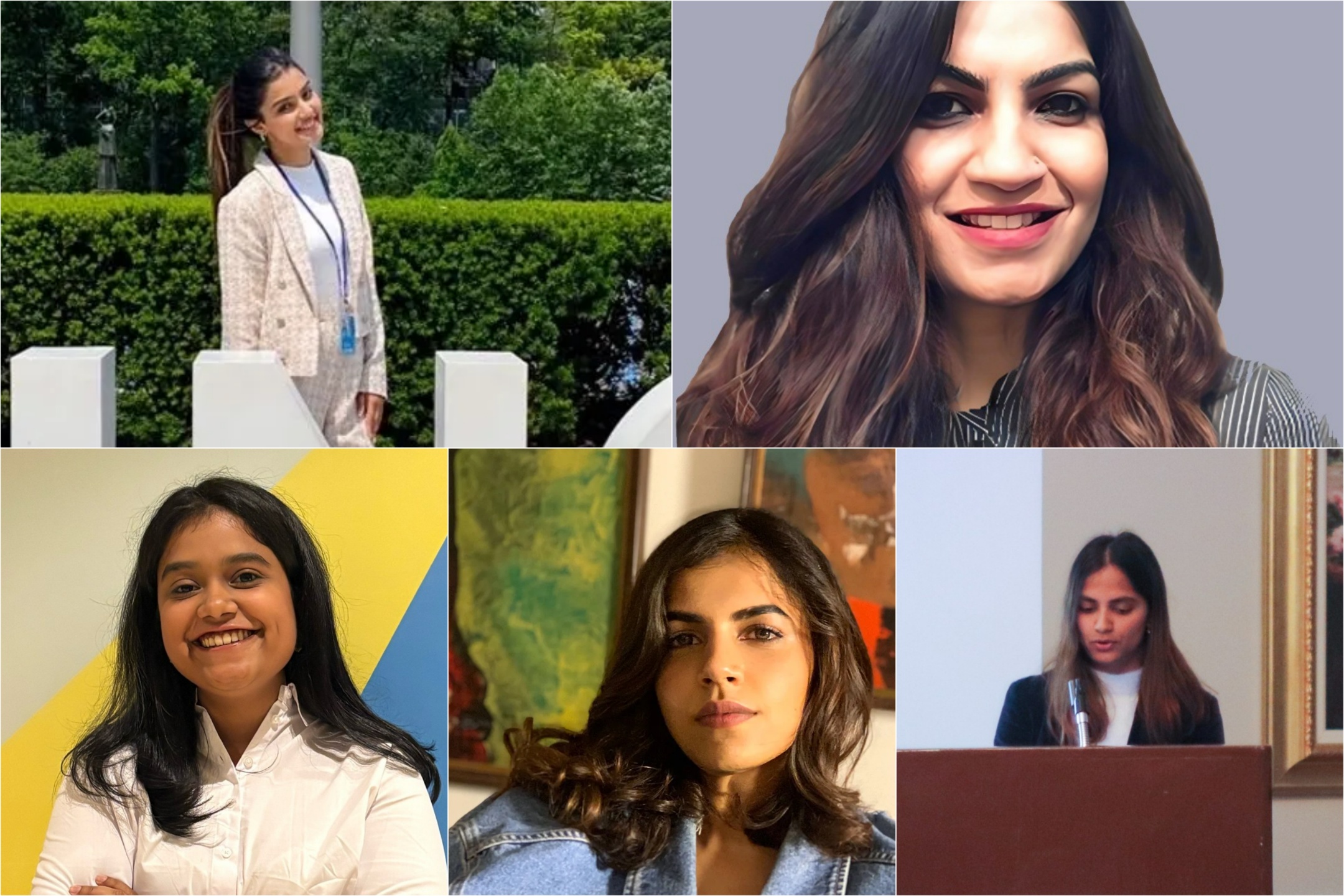(Top, L-R)Khushi Shah (Image- KhushiShah.org), Soumya Singh (Image- LinkedIn), (Bottom, L-R) Anjali Laddha (Image- LinkedIn), Vallabhi Singh (Image- Northeastern University) and Tejaswini Kambaiahgari (Image- LinkedIn) /