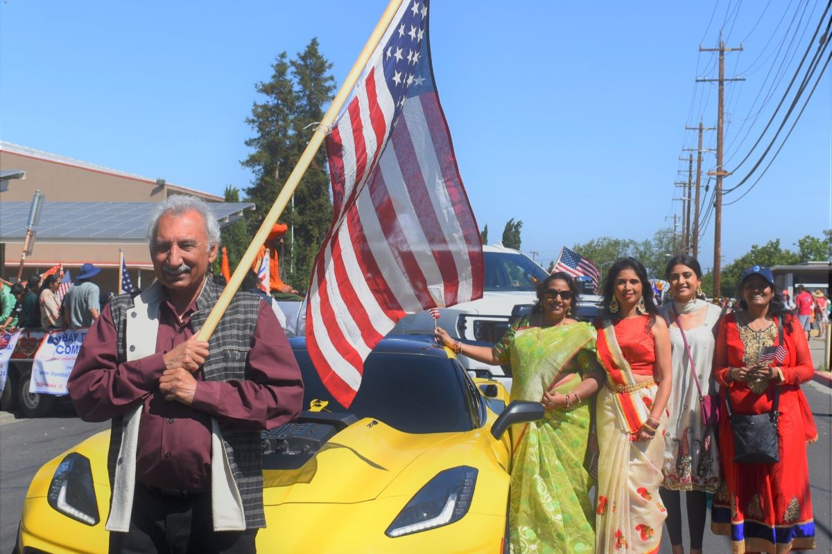 Dr. Harmesh Kumar leads a July 4th Independence Day celebration. / Supplied