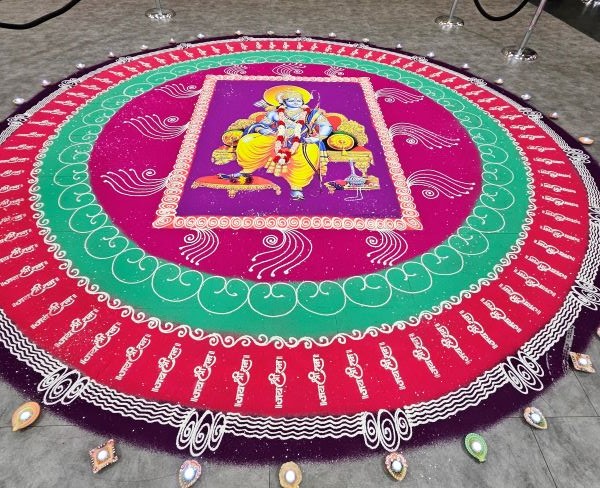 Ram Rangoli by Limca record holder Sangeeta / HGHThe Swapnil Masi group played the same tune that was played by the Shri Ram Pathak group in Ayodhya during the temple’s consecration ceremony. An exhibition on Lord Ram and a Rangoli by Limca world record holder Sangeeta were among the other attractions at the event.