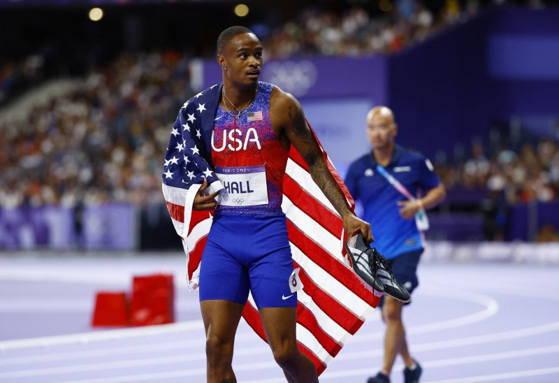 Olympics-Athletics-Fast-finishing Hall grinds out 400m gold for US