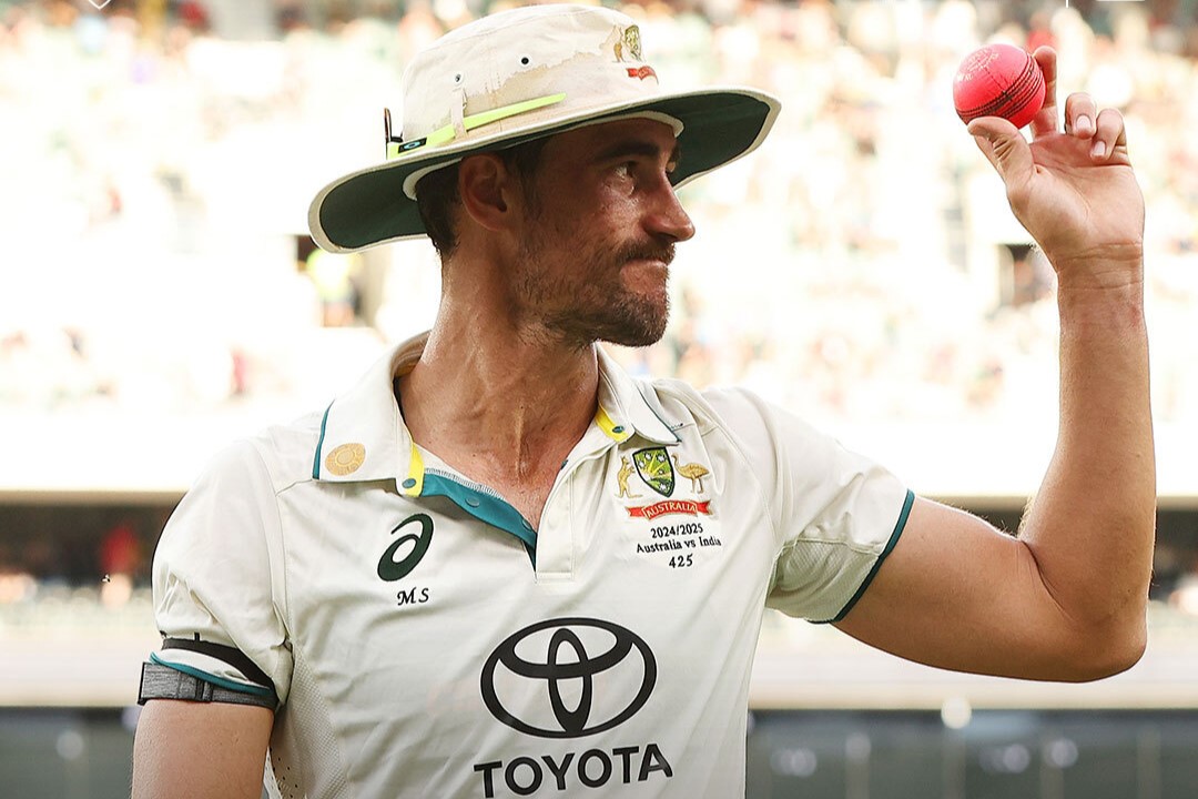 Mitchell Starc achieved his career-best figures on Day 1 of the second tests. / X@cricketcomau