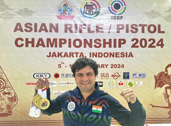 India's Yogesh Singh won the men's 25m standard pistol event at the Asian Shooting Championships 2024 in Jakarta, Indonesia. Singh secured the gold medal with a score of 572, showing consistency across all stages.